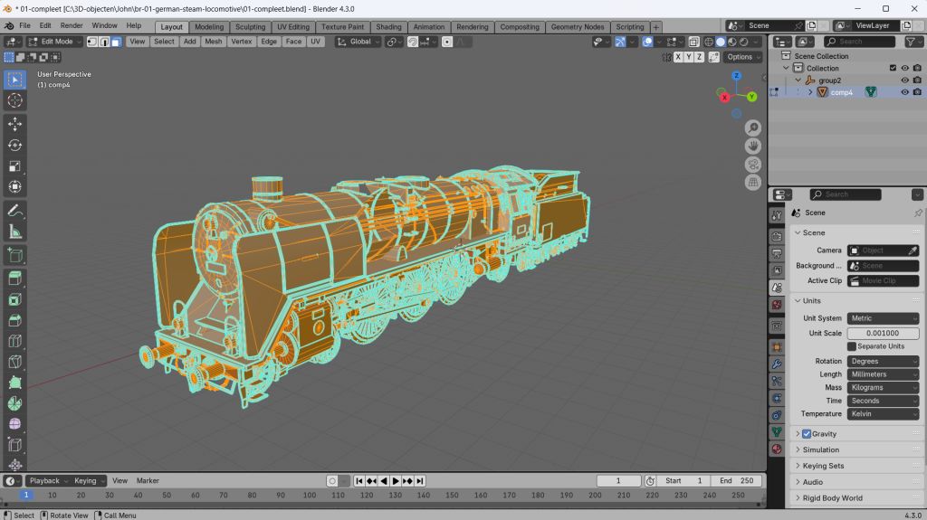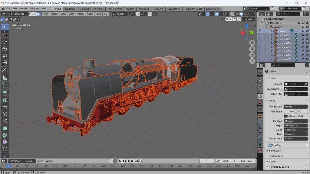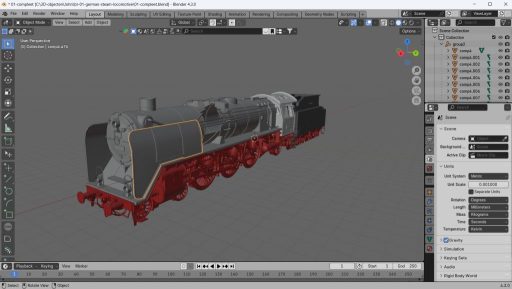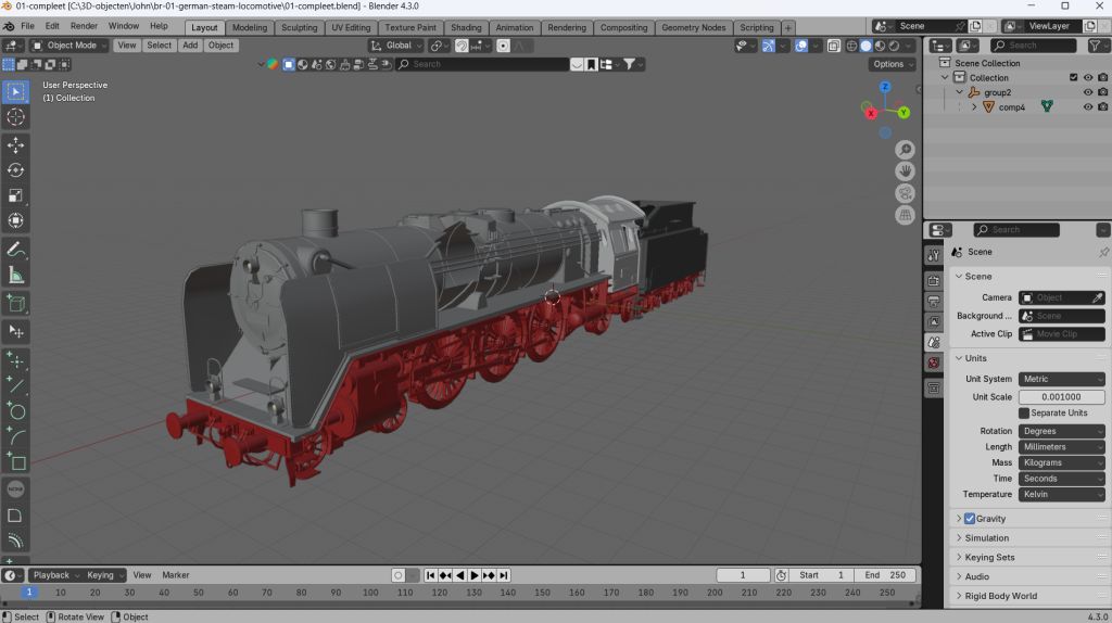Mijn plukloc is een BR 01, ooit gevonden op het WWW als FBX bestand. In Blender heb ik het model geïmporteerd en verschaald naar 1:87 H0.